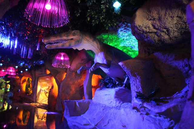 这可是我期待已久的船行体验,买好票,到码头穿好救生衣,在这里必须给开船的师傅点个赞,全程都很稳,体验感A+++++,沿途有很多小动物,恐龙,以及岩洞探险,还有很多好看的灯光,妥妥的网红打卡地,整趟下来差不多30分钟左右。