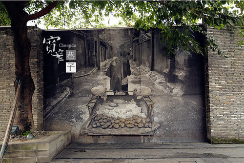a宽巷子闲生活,窄巷子慢生活,井巷子新生活。