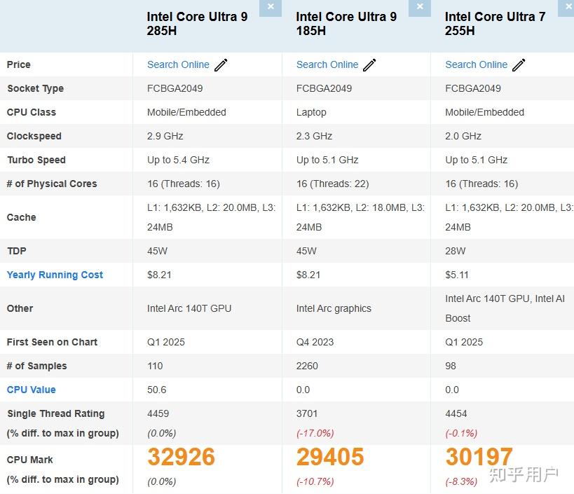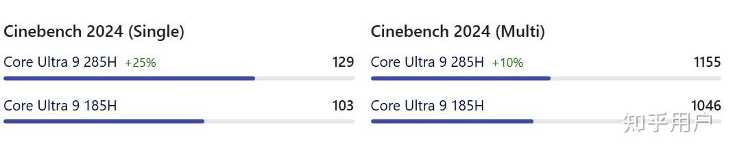 在Passmark跑分中,Ultra 9 285H单核比U9 185H强17%,多核比185H 强10.7%左右;比Ultra 7 255H单核强0.1%(忽略差距),多核强8.3%左右。